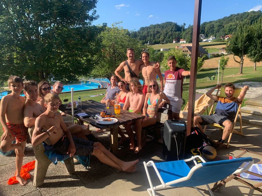 Am letzen Tag im Juli 2022 beschlossen wir uns einen gemütlichen Sonntagnachmittag im Freibad Gnas zu machen. Es wurde nicht nur im Bad abgekühlt, sondern in entspannter Atmosphäre getratscht, Spikeball gespielt und schließlich auch das Finale der Damen-Fußball-EM  angeschaut. Das Wetter spielte perfekt mit und wir freuten uns über viele Mitglieder der KJ, die vorbeischauten. Mit dabei war auch unser Lieblingsbademeister "Hasi".