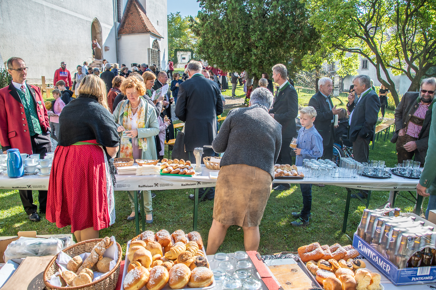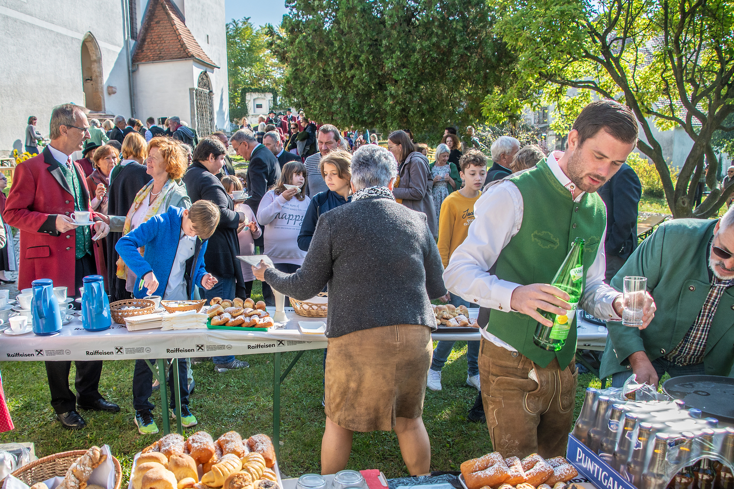 Die Mitglieder des Pfarrgemeinderates luden zu einer Agape, sowie zu Kaffee und Kuchen ein. Für die Kinder spendete der Obstbauverein Apfelsaft.