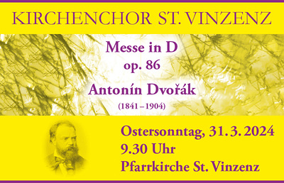 Am Ostersonntag, 31. März, dürfen wir wieder mit großer Freude dem Kirchenchor St. Vinzenz lauschen, der gemeinsam mit einem großartigen Orchester und Solisten die Festmesse gestalten wird.